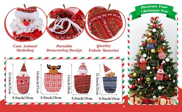 Die Größe dieser Tasche ist perfekt für Weihnachtsgeschenke, Partygeschenke, Süßigkeiten, Äpfel und Christbaumschmuck.