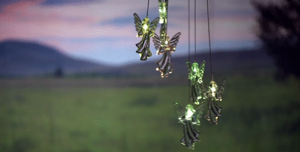 Unser Farbwechsel-Solarmobile mit Engeln leuchtet bei Dunkelheit automatisch und leuchtet abwechselnd in 7 verschiedenen Farben, wobei der Farbwechsel ruhig und sanft von einer Farbe zur nächsten erfolgt.