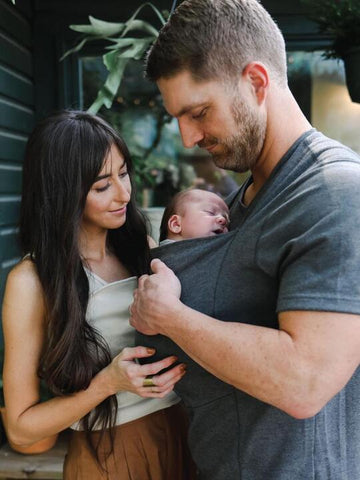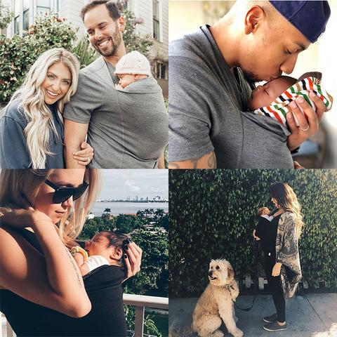 Le t-shirt à poche kangourou veut rendre le portage de bébé facile pour les parents.