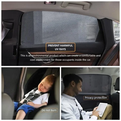 The side window shade is made of a flexible, stretchy mesh material that helps block the sun, making your child safer and your car cooler. and can be used for at least 5- 10 years,it won't hurt your car's paint job or its interior, either. This durable, lightweight fabric simply pulls down over the car door. provide your passengers with the most comfortable travel experience. Best sun shade and they keep the bugs out.
