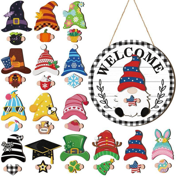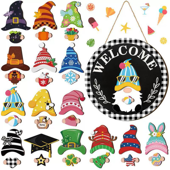 🍀🌸 Interchangeable Wooden Gnome Welcome Sign – Celebrate Every Season with Style! 🎄🌷